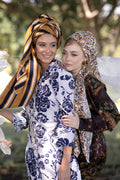 מטפחת מרובעת בגודל של 150*150 מבד מודפס ונעים לקשירה.