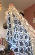 לונג עשוי בד שיפון עם הדפס כחול חגיגי וחוטי זהב שזורים