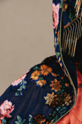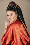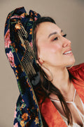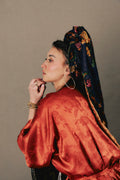 מטפחת עשויה בד טול כחול כהה עם קטיפה צרובה