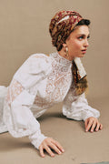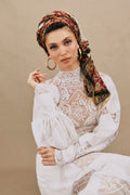 כמובן שאי אפשר לפספס את הסרט העדיין בקצה המטפחת שמקפיץ את הלוק למקום חגיגי עוד יותר.