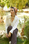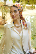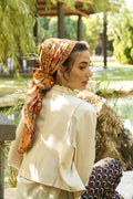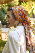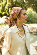 עם הדפסי פרחים ופייזלי בניחוח אתני עם הדפסי זהב אדום שמנת וכחול